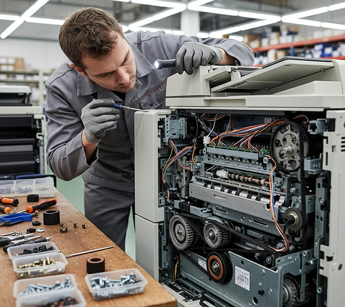 - تعهد به استفاده از قطعات اصلی (OEM): طول عمر دستگاه شما پس از تعمیر، مستقیماً به کیفیت قطعات تعویضی بستگی دارد. ما به عنوان بهترین مرکز تعمیر دستگاه کپی در جردن، خود را ملزم به استفاده از قطعات اورجینال یا گرید A میدانیم تا عملکرد و دوام دستگاه شما تضمین شود.